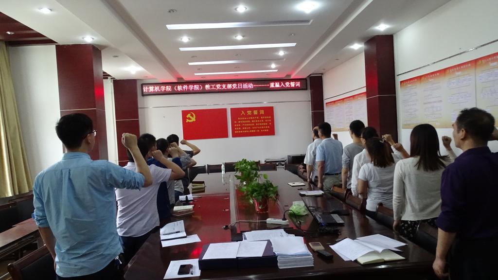 为了推动“两学一做”学习教育常态化制度化,进一步增强广大教工党员的党性修养,6月14日,计算机学院(谈球吧)教工党支部开展了“坚定理想信念,重温入党誓词”党日活动。