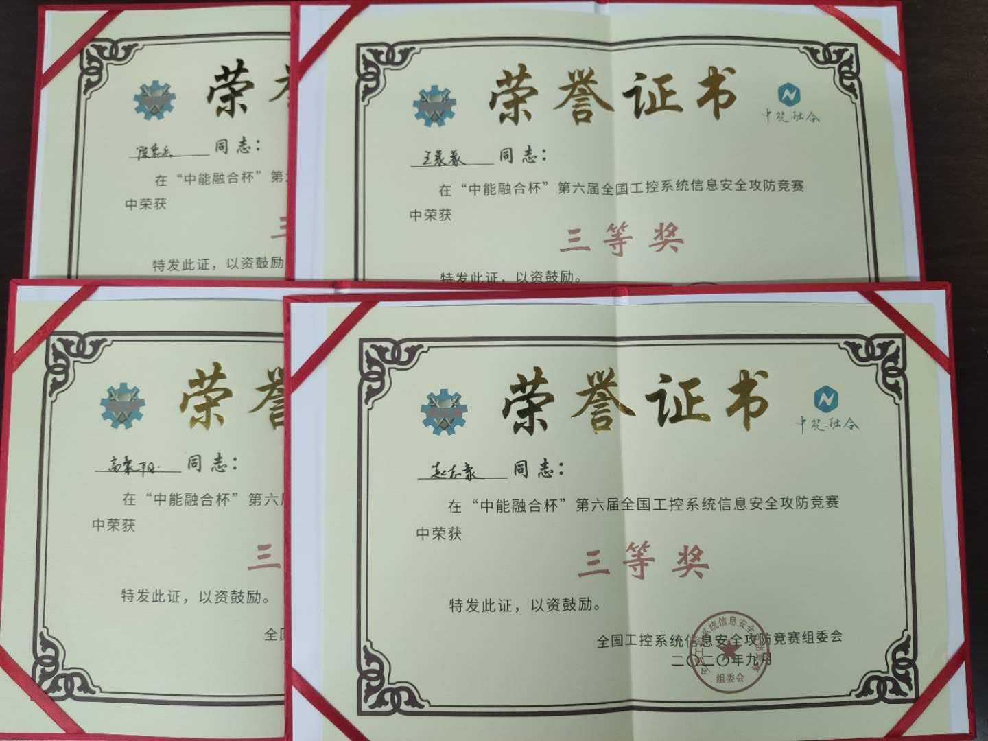 9月25日-26日,“中能融合杯”第六届全国工控系统信息安全攻防竞赛决赛在北京市华北电力大学举办。计算机学院(谈球吧)员工陈惠兵、赵志豪、王蒙蒙、高聚阳等四人组成的团队,沉着应对,稳扎稳打,最终在包括清华大学、郑州大学、南方电网和中国电信等校企20支队伍中,名列第9,获得决赛三等奖。
