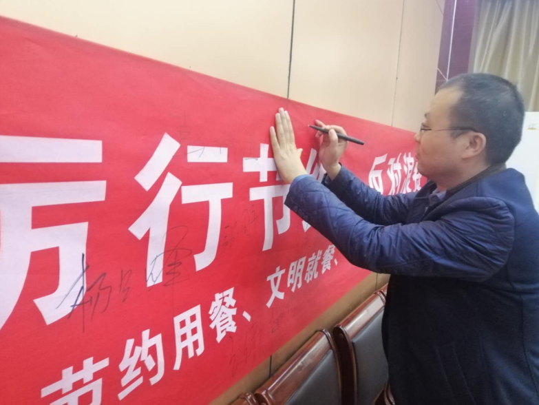 学习之后,组织教工党支部党员在科技楼214进行签名承诺,全体党员排队依次在“厉行节约,反对浪费”横幅上郑重的签上姓名,做出承诺,要节约用餐、文明就餐、争当勤俭节约的践行者!