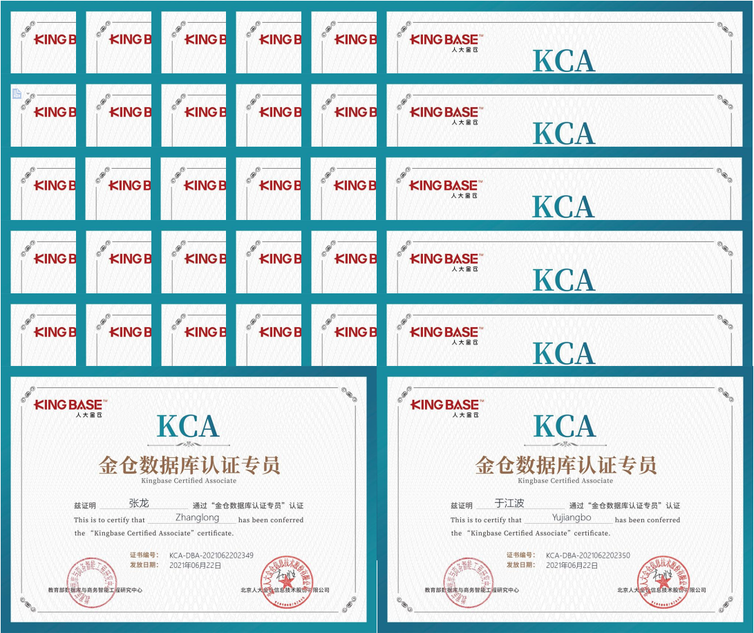 2021年6月25日下午,鲲鹏产业学院组织了人大金仓数据库认证专员(KCA)考试,数据库与数据分析创新工作室32名员工参加并顺利通过。KCA认证是人大金仓数据库认证体系的基础认证,内容涵盖金仓数据库的装卸启停、对象管理器、命令行工具、数据迁移工具、数据定义、数据控制、数据操纵、数据查询、简单的数据库监控和运维等数据库管理员的日常基础工作。通过KCA认证后可承担企业数据库的规划、使用、咨询和管理工作。